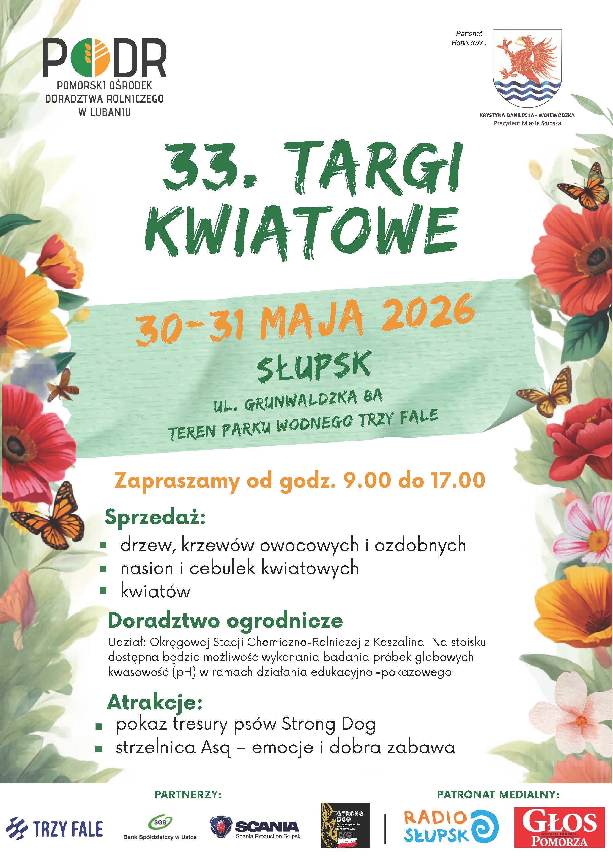 Zapraszamy serdecznie na 33. Targi Kwiatowe „Słupsk 2026”, które odbędą się w dniach 30-31 maja 2026 roku w Słupsku! To wyjątkowe wydarzenie to doskonała okazja, aby odkryć bogactwo roślin, poznać lokalnych wystawców oraz zainspirować się do stworzenia pięknych ogrodów.