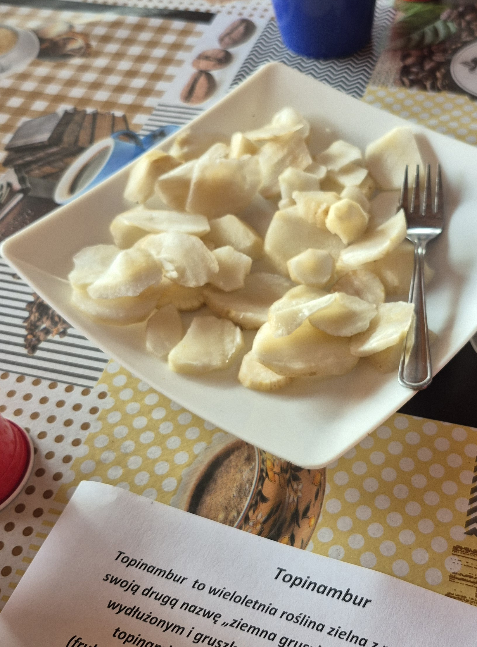 Kolejnym punktem programu była wizyta w gospodarstwie ekologicznym prowadzonym przez Szymona Płusę w Skarżysku-Kościelnym. Jest to przykład gospodarstwa, które skutecznie łączy produkcję rolną z przetwórstwem, zwiększając wartość dodaną oferowanych produktów. Rolnik od 2018 r. prowadzi ekologiczną uprawę topinamburu (zwanego potocznie bulwą) na powierzchni ok. 3 ha. Bardzo dobra jakość bulw uprawianych w gospodarstwie i ich właściwości zdrowotne sprawiają, że coraz więcej osób na nowo odkrywa to warzywo. Historia uprawy topinamburu sięga bowiem XVII wieku. Topinambur dzięki swojemu unikalnemu składowi świetnie wpływa na przemianę materii, aktywuje wydzielanie żółci i enzymów trzustkowych. Zbiory bulw zaczynają się jesienią i trwają do wiosny. Topinambur sprawdza się na lekkich glebach, a jego bulwy są odporne na silne mrozy.