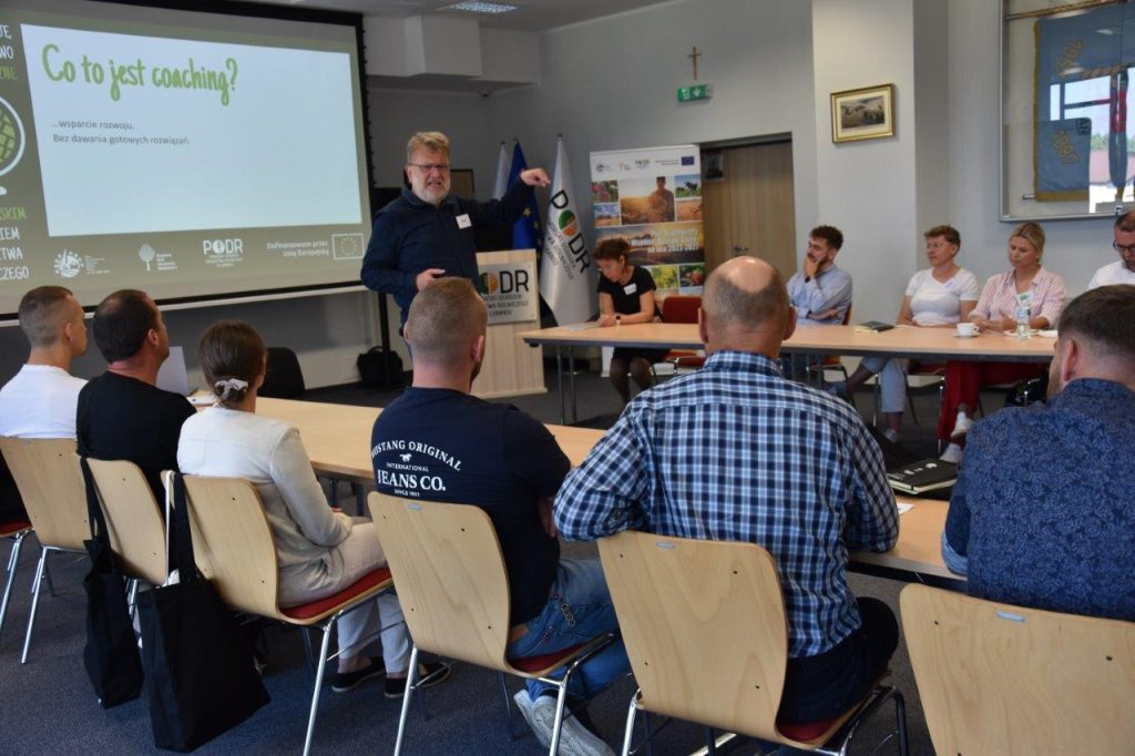 Warsztaty poprowadził Piotr Ławacz, coach i moderator, który wprowadził wszystkich w tematykę rozwoju osobistego i narzędzi coachingowych w pracy rolnika. Jego interaktywne zajęcia sprawiły, że od początku panowała żywa, otwarta atmosfera.