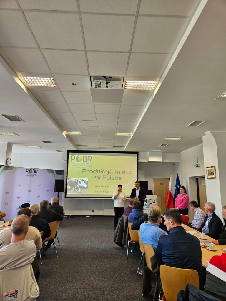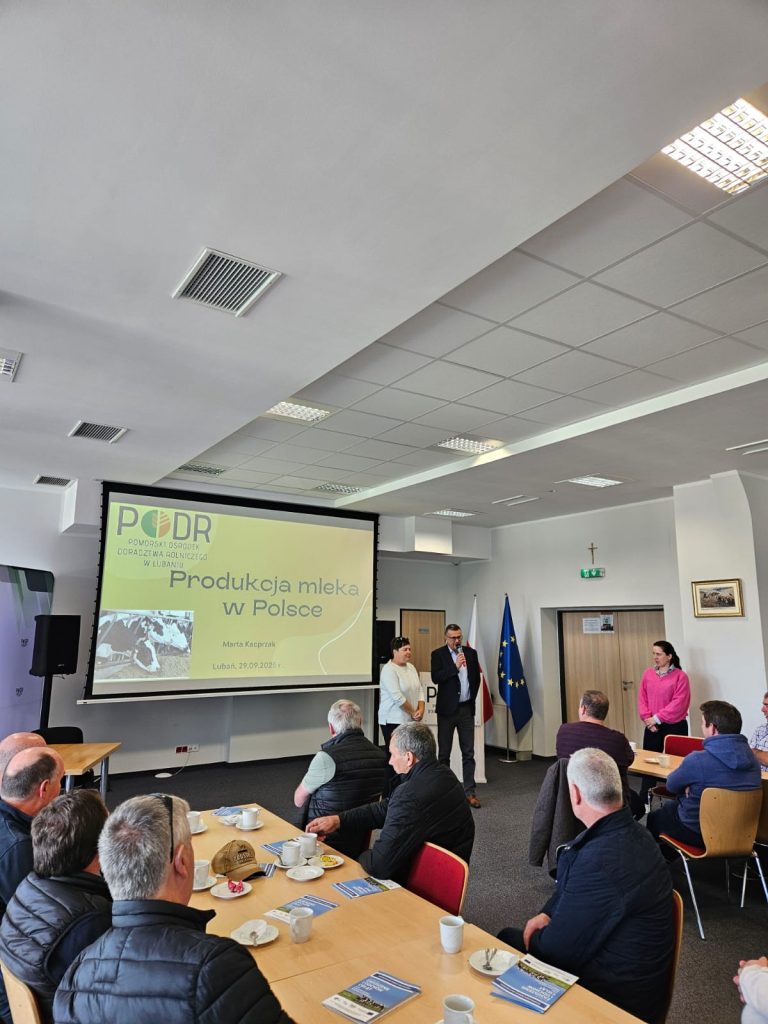 W poniedziałek, 29 września, Pomorski Ośrodek Doradztwa Rolniczego w Lubaniu gościł niemal 50-osobową grupę hodowców bydła mlecznego i producentów mleka z Cork w Irlandii. Nasi goście chcieli poznać jak wygląda produkcja mleka w północnej Polsce. Podczas prelekcji specjalista ds. produkcji zwierzęcej PODR w Lubaniu Marta Kacprzak zaznajomiła słuchaczy ze stanem pogłowia, jego wahaniami na przestrzeni ostatnich 20 lat oraz zmieniającymi się cenami skupu surowca. Goście mieli wiele pytań odnośnie prowadzenia gospodarstwa mlecznego w Polsce. Porównywali uzyskane informacje do irlandzkich realiów. Wywiązały się też pytania o występowanie choroby niebieskiego języka i restrykcjach wynikających z ww. faktu.