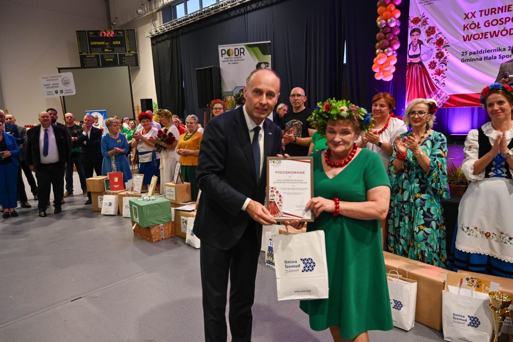 Wszystkie KGW uczestniczące w turnieju otrzymały pamiątkowe dyplomy i nagrody od Pomorskiego Ośrodka Doradztwa Rolniczego w Lubaniu, które wręczyli: Aleksander Mach Dyrektor PODR w Lubaniu oraz Karolina Wróbel – z-ca Dyrektora PODR w Lubaniu, Radosław Śnieg Zastępca Dyrektora Krajowego Ośrodka Wsparcia Rolnictwa. Fundatorem nagród za udział w turnieju był również Wojewódzki Związek Rolników, Kółek i Organizacji Rolniczych w Gdańsku, Wójt Gminy Szemud Ryszard Kalkowski ufundował upominki dla Kół uczestniczących w Turnieju oraz nagrodę dla KGW z Gminy Szemud.
